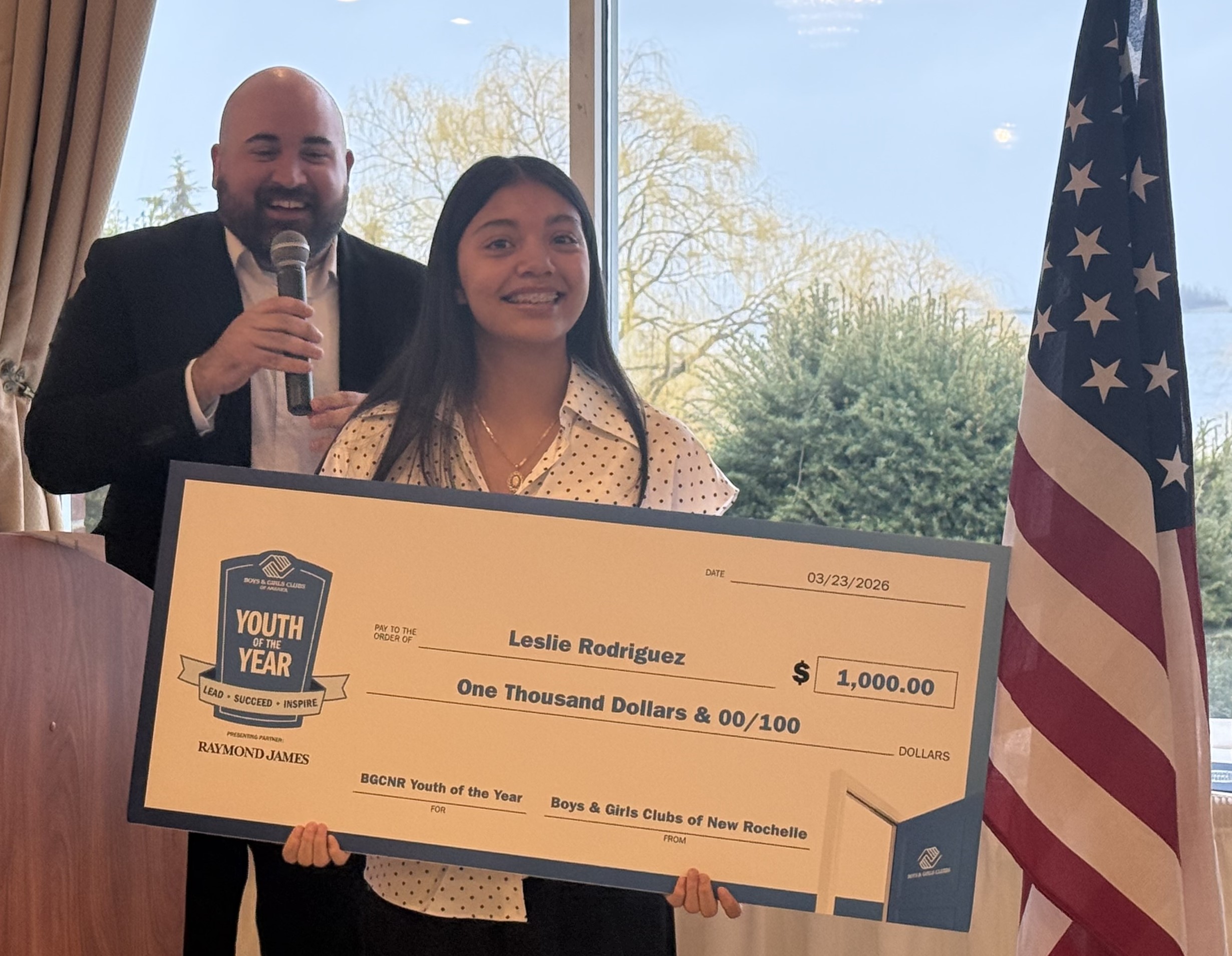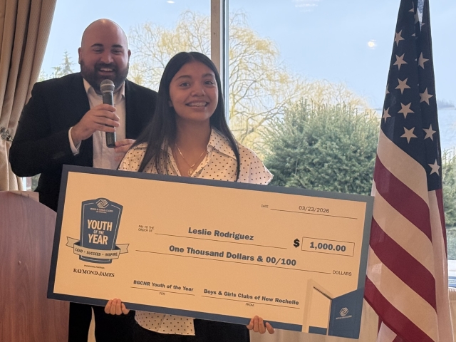 Rodriguez, a New Rochelle High School junior, received a $1,000 scholarship from the Boys & Girls Club of New Rochelle as well as a trophy and proclamations and citations from elected officials. She was selected from seven finalists due to her growth into a resilient and compassionate leader who transformed personal hardship into purpose by mentoring younger Boys & Girls Club members.